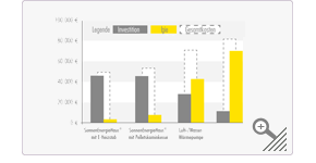 Eine Investition wie das SonnenEnergieHaus sollte auch stets auf die Wirtschaftlichkeit hin überprüft werden. Wie sieht es also mit Energiekosten und Amortisation aus? Unterschiedliche Maßnahmen und Kostenbetrachtungen sehen Sie in unserer Grafik. |
